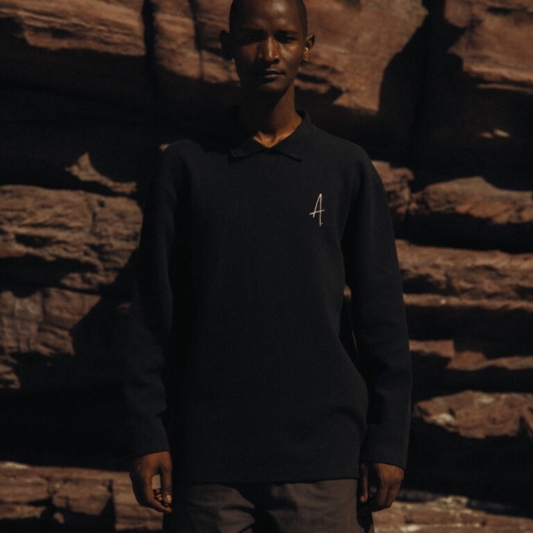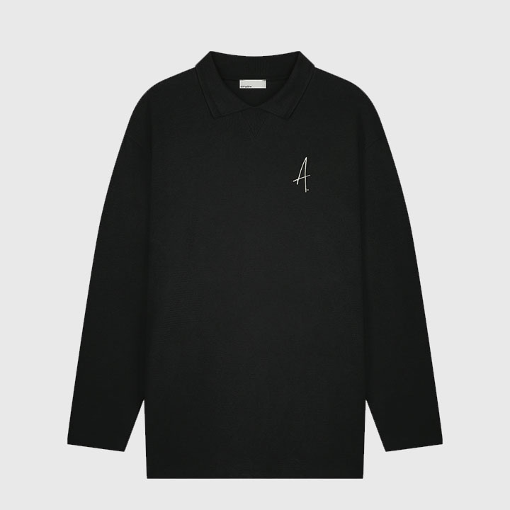 Ampère FW25 Gijs Wavy Jacquard L/S Polo Pirate Black