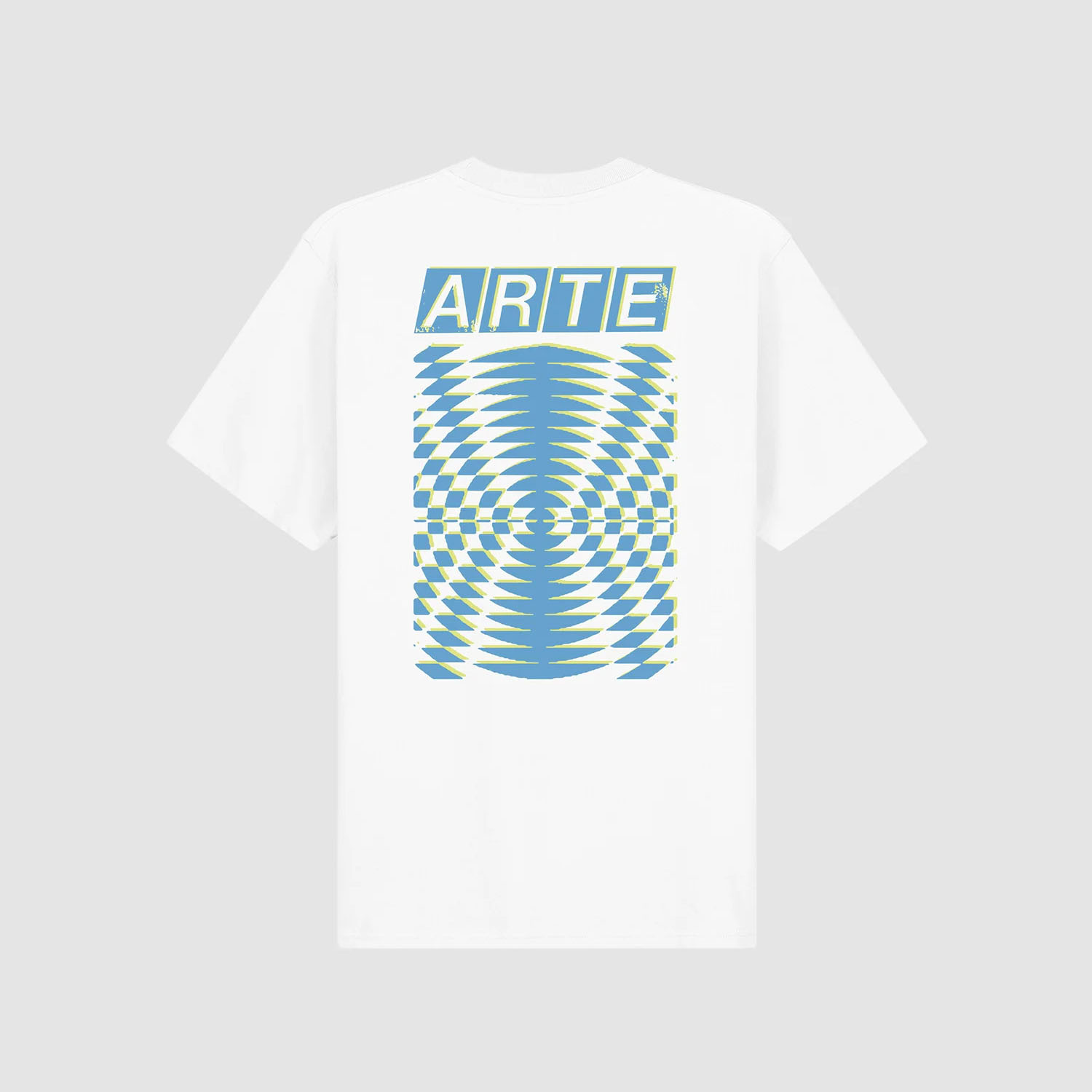The Arte Abstract Back T-Shirt in White features a clean front and bold abstract graphic on the back. Crafted from soft cotton jersey, it offers a comfortable fit with contemporary streetwear style.
