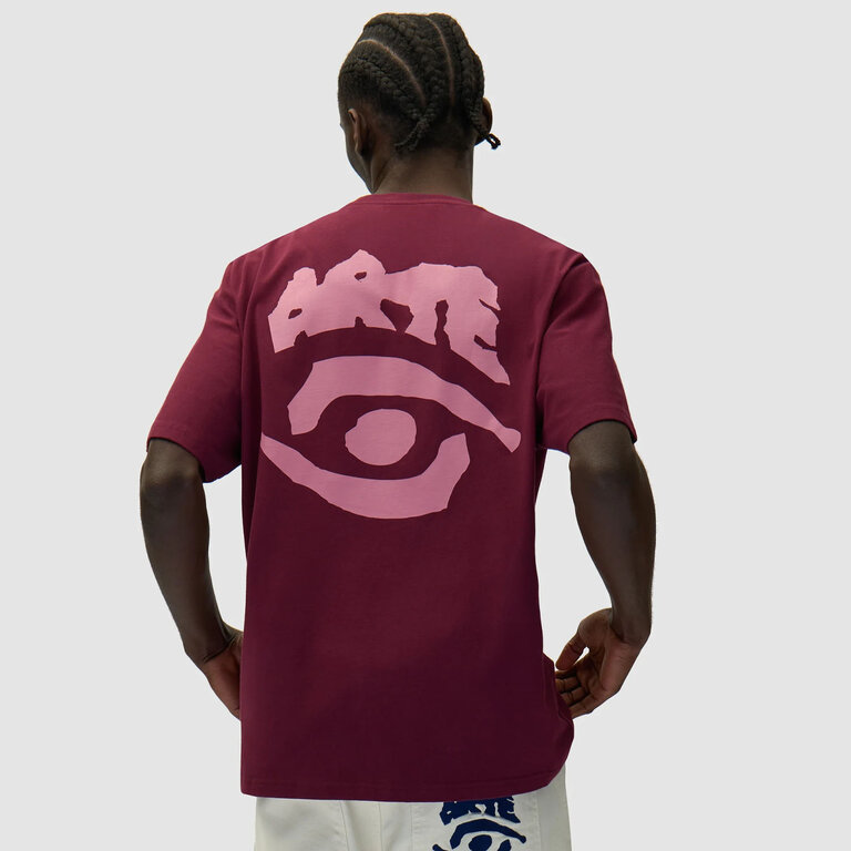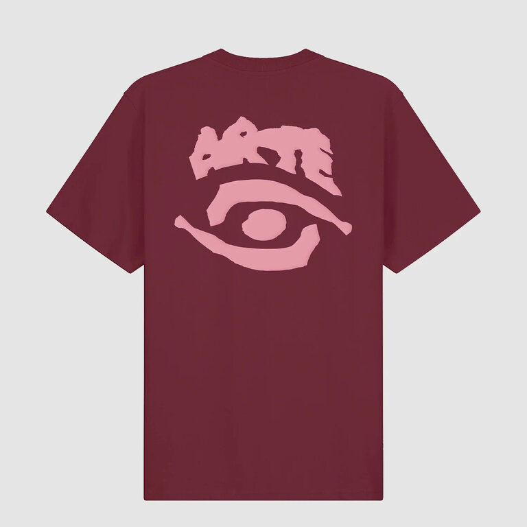Arte Eye Print Tee Bordeaux – casual streetwear t-shirt in 100% cotton. Soft fabric with relaxed fit and bold eye print on a rich bordeaux tone. Perfect for everyday comfort and layering.