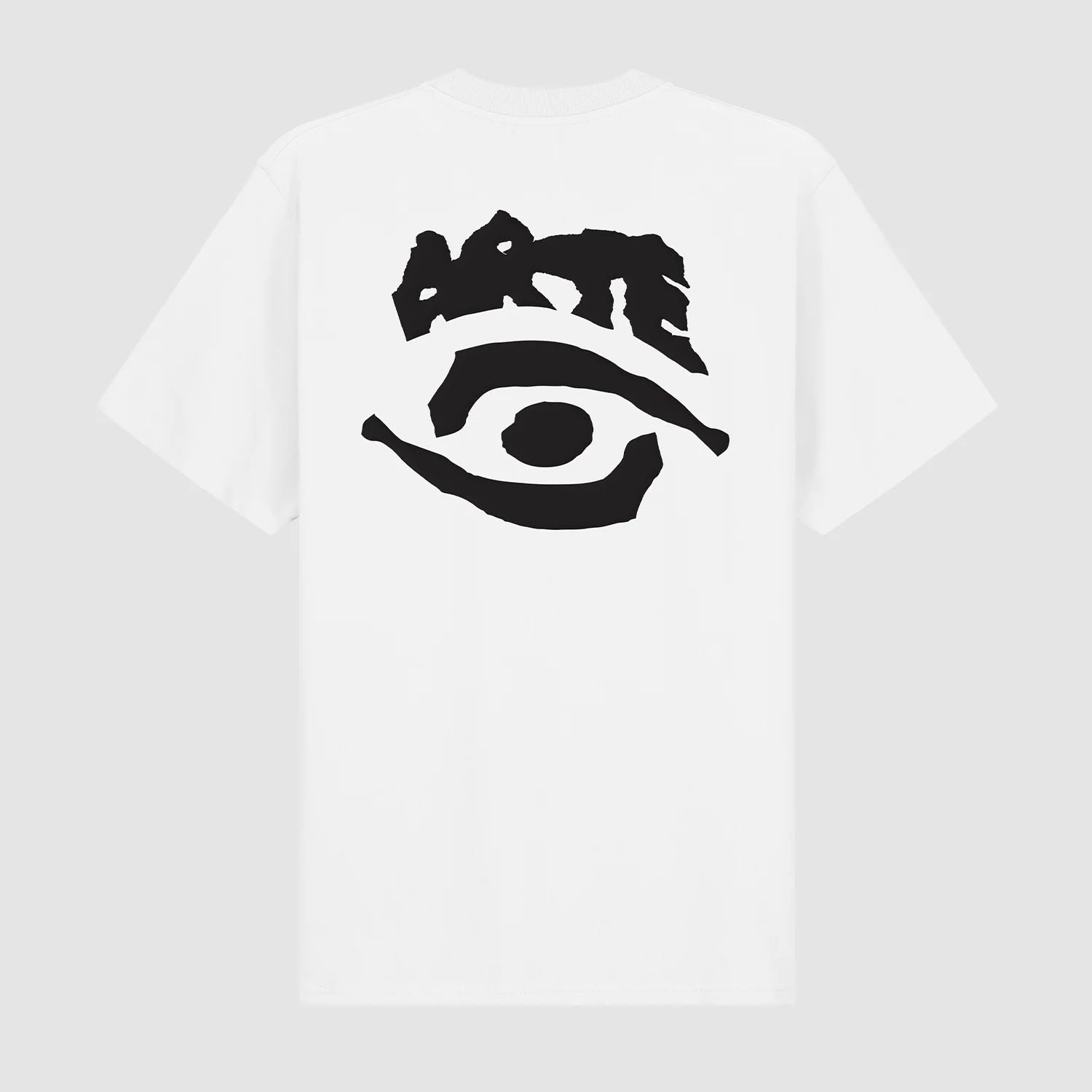 Arte Eye Print Tee White – casual streetwear t-shirt in 100% cotton. Soft fabric with relaxed fit and bold eye print on clean white. Perfect for everyday comfort, style, and layering.