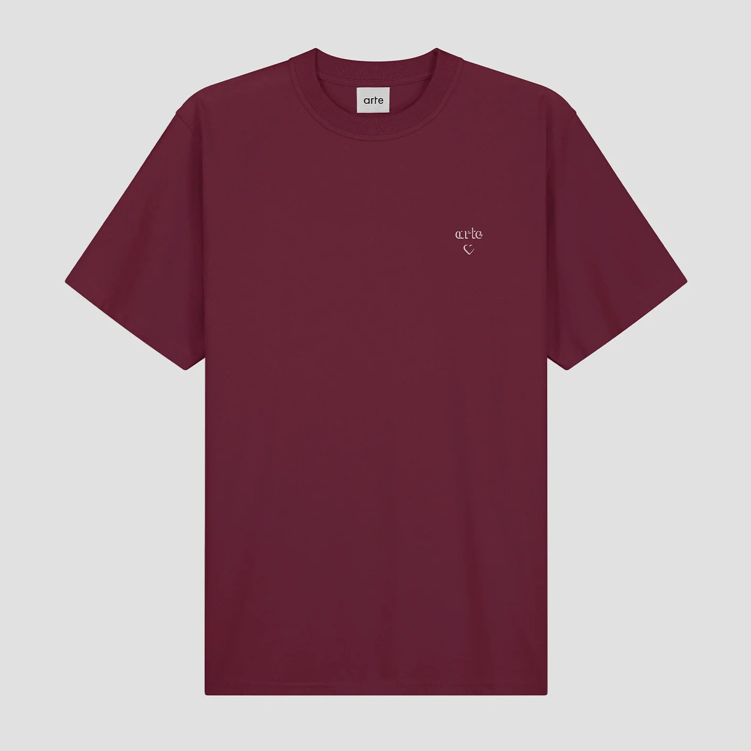 Arte Heart Tee Bordeaux – crafted from premium cotton with a relaxed fit. This timeless black t-shirt features Arte’s signature embroidered white heart logo on the chest, combining everyday comfort with a clean, minimal streetwear aesthetic.