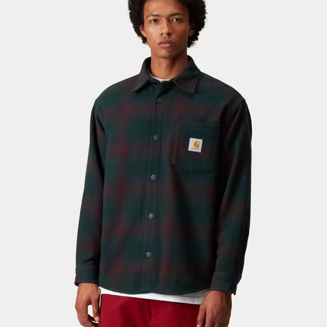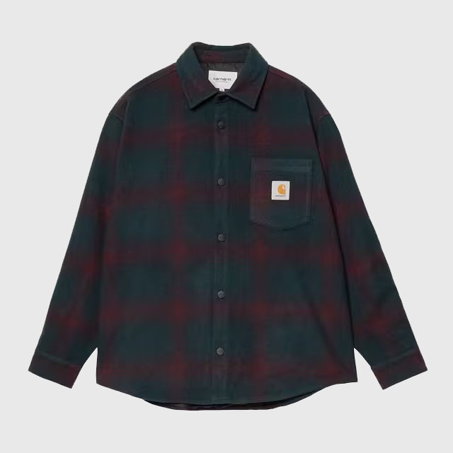 Carhartt WIP Brennan Shirt Jac Deep Lagoon/Rondo – 80% wool blend, regular-fit shirt jacket with button-down collar, chest pocket with woven Square Label, and Deep Lagoon/Rondo check pattern. Perfect for layering in cooler weather.
