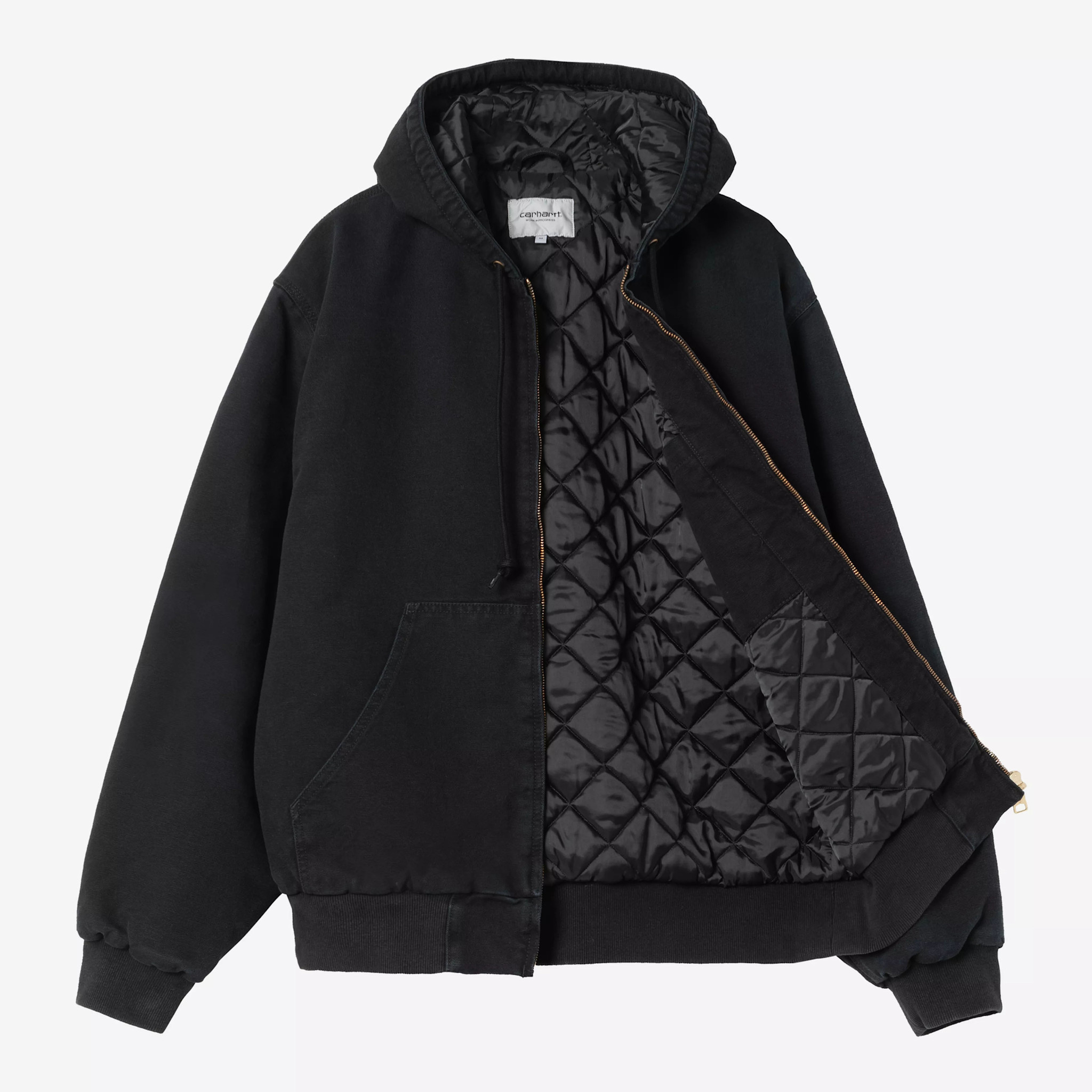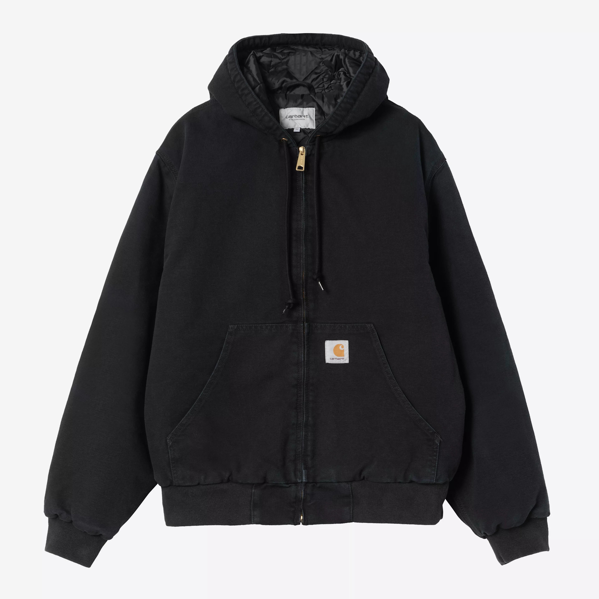 Carhartt WIP OG Active Jacket Black features heavyweight organic Dearborn Canvas, rib-knit trims at cuffs & hem, a poplin body lining and nylon sleeves. Loose original fit with kangaroo pocket, inside chest pocket, and durable triple stitching.