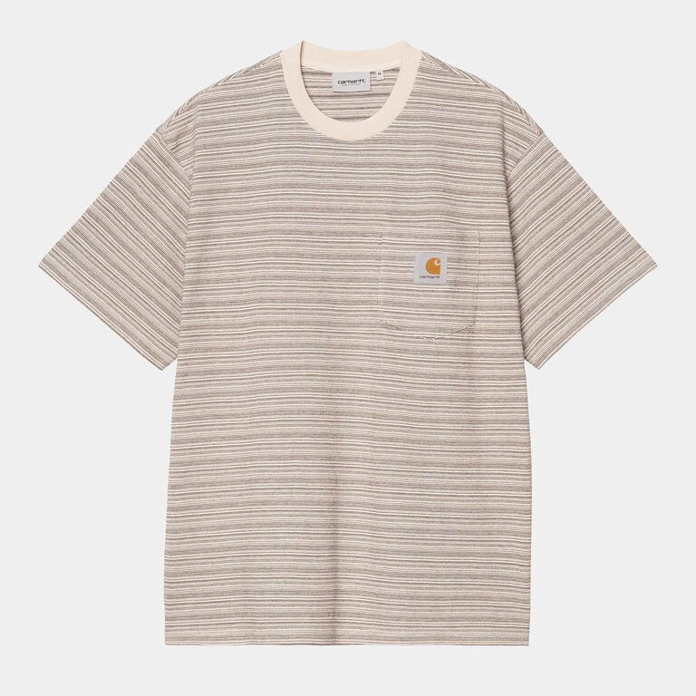 Carhartt WIP S/S Gellar Shirt Wax – Loose-fit short-sleeve shirt made from midweight yarn-dyed cotton jacquard with all-over stripes, a front button closure, chest pocket, and signature Square Label.