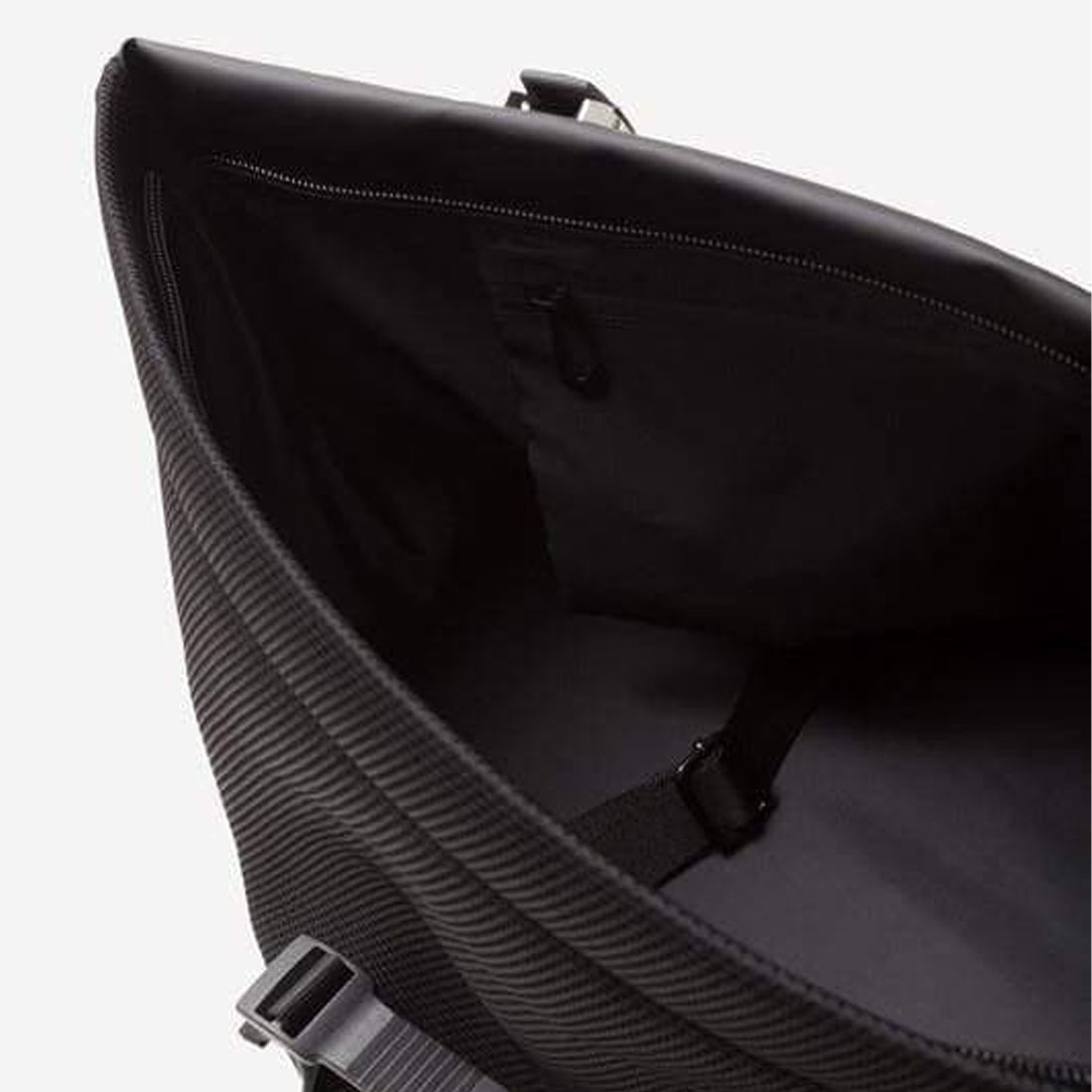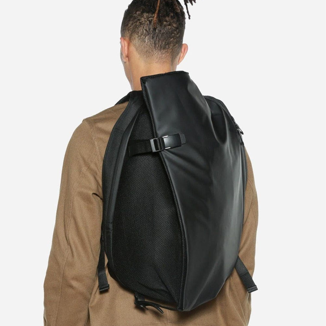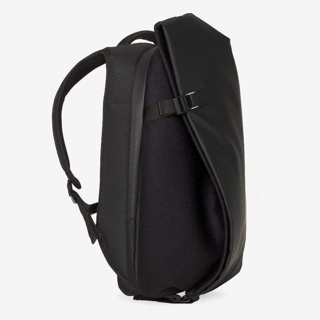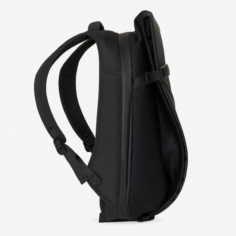 Conceived for those who want a bag that combines a futuristic design statement with practicality and comfort, this new version is fabricated from a water-repellent coated polyester with a tactile rubberized finish, complemented with a light grey interior lining and breathable mesh on flaps, straps and back panel.