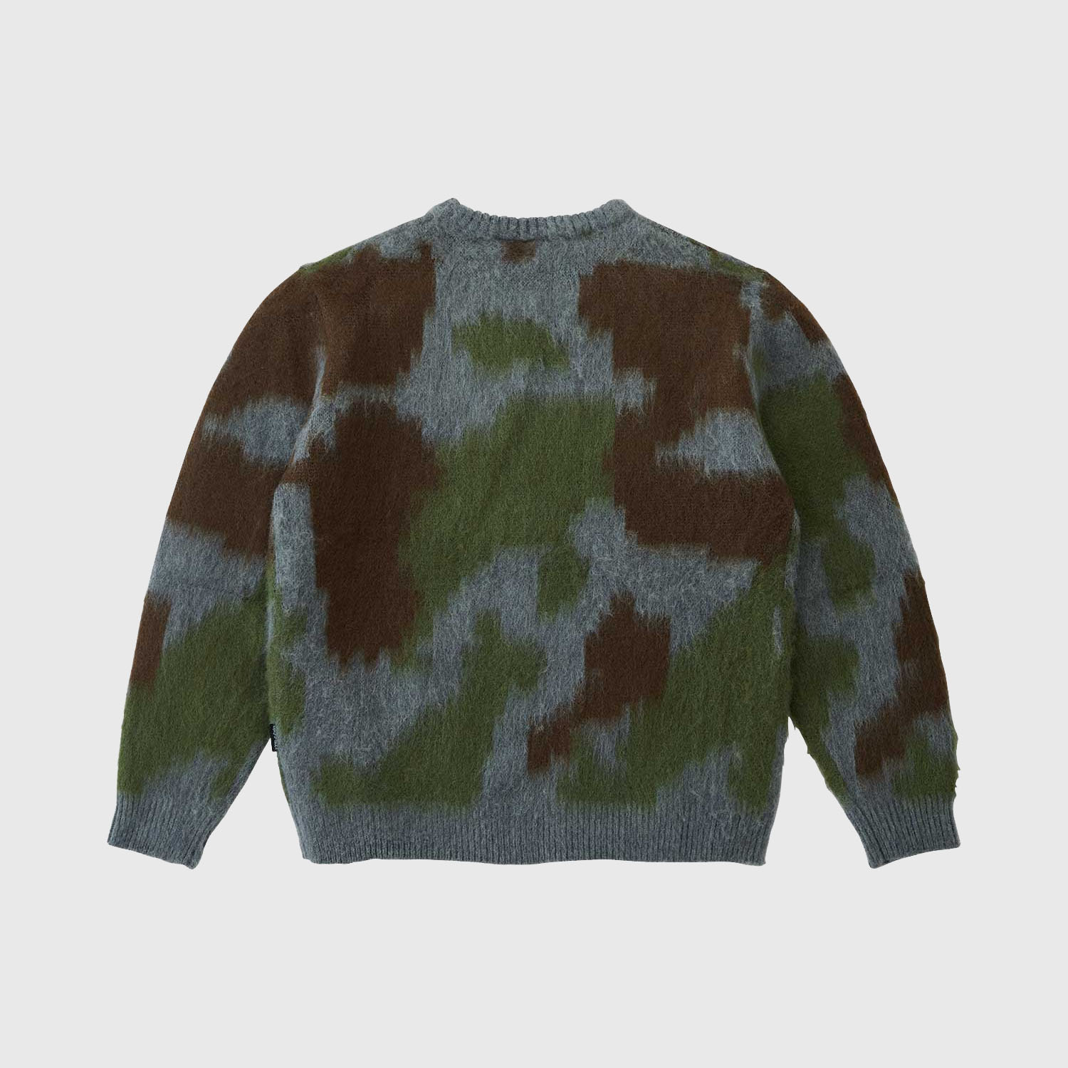 Gramicci Mohair Sweater Jungle Digi Camo blends a relaxed, slightly boxy shape with a super-shaggy mohair-wool blend. Featuring a crew neck, eye-catching digital camo pattern, and soft texture that adds depth and warmth.