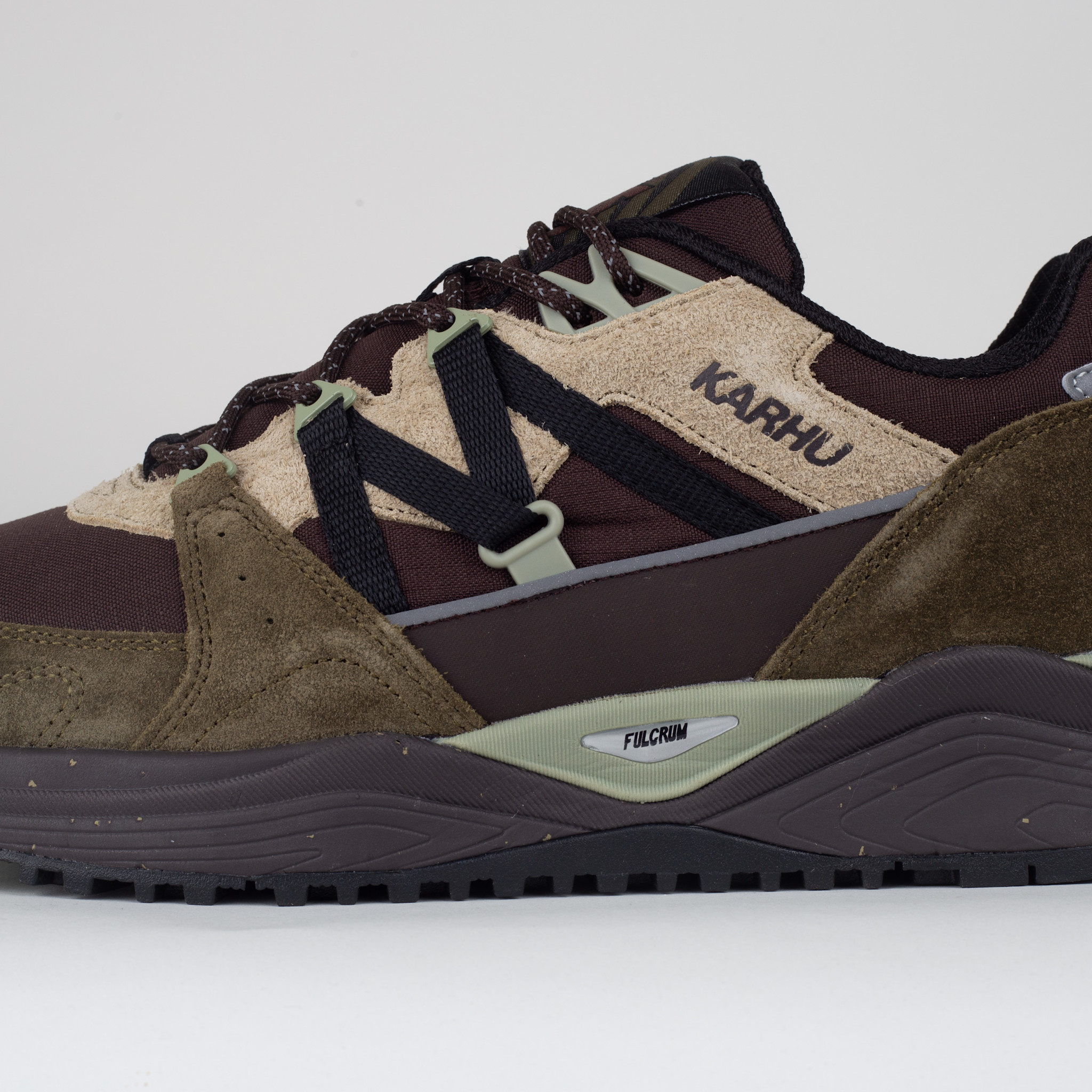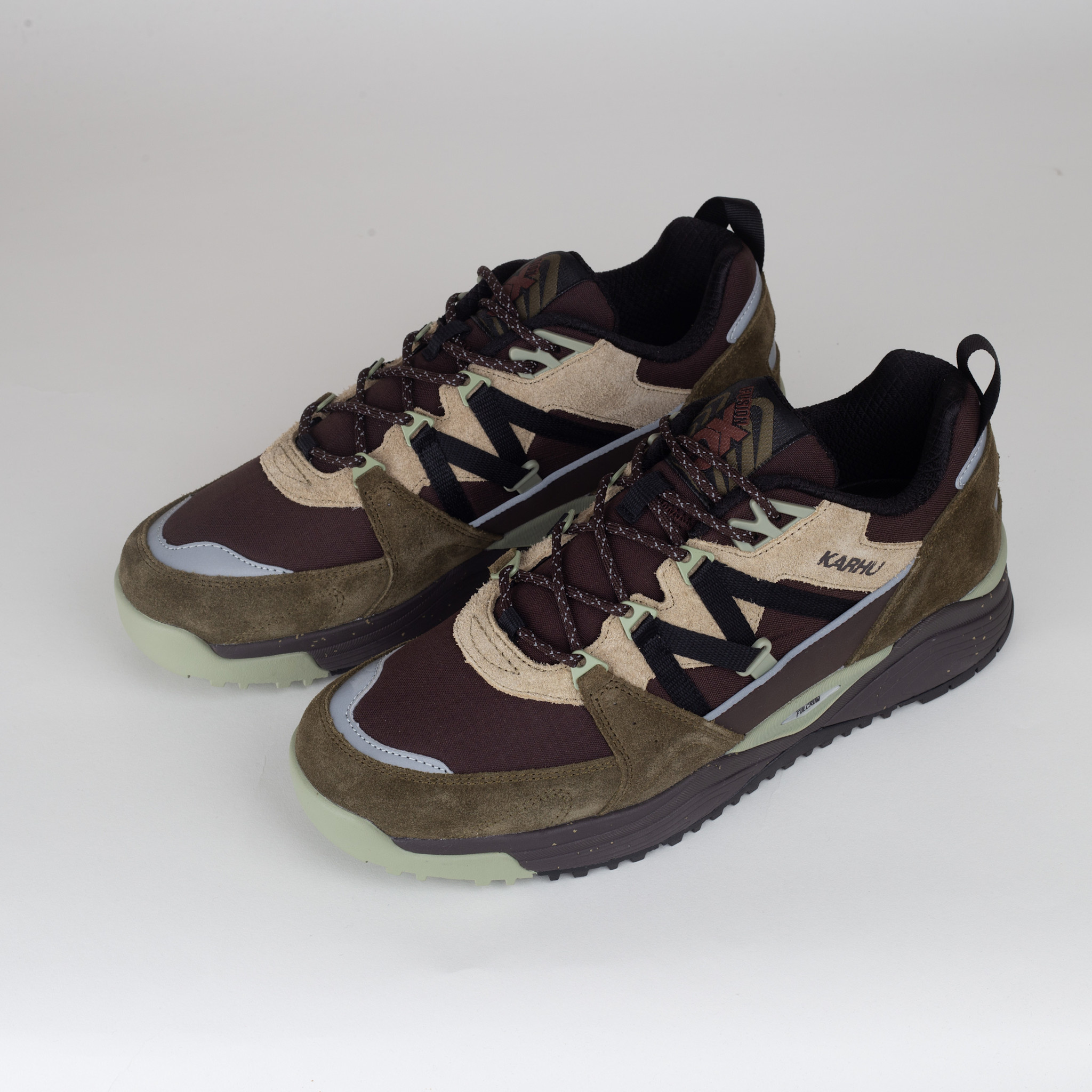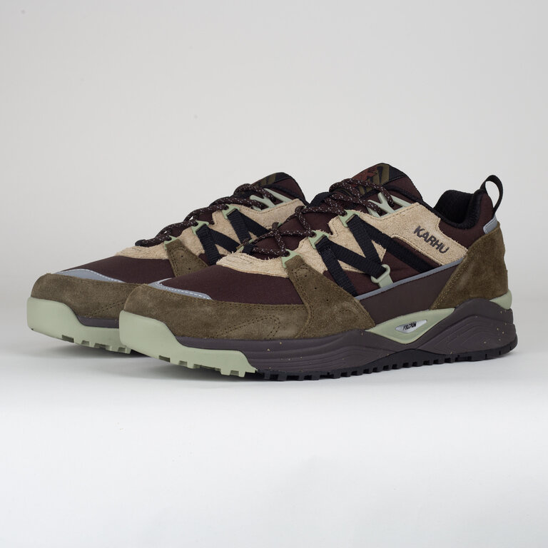 Karhu Fusion XC Aztec / Jet Black – rugged outdoor sneakers with HydroGuard® waterproof membrane, nubuck upper, water-repellent nylon tongue & rubber mudguard. Fulcrum cushioning and Air Cushion midsole ensure support & comfort.
