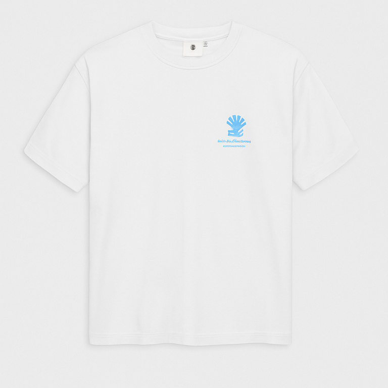 The NASA Oyster Tee White is a crew-neck unisex tee in 240 GSM OE cotton jersey with a regular fit. It features ribbed collar and oyster artwork printed on both the front and back.