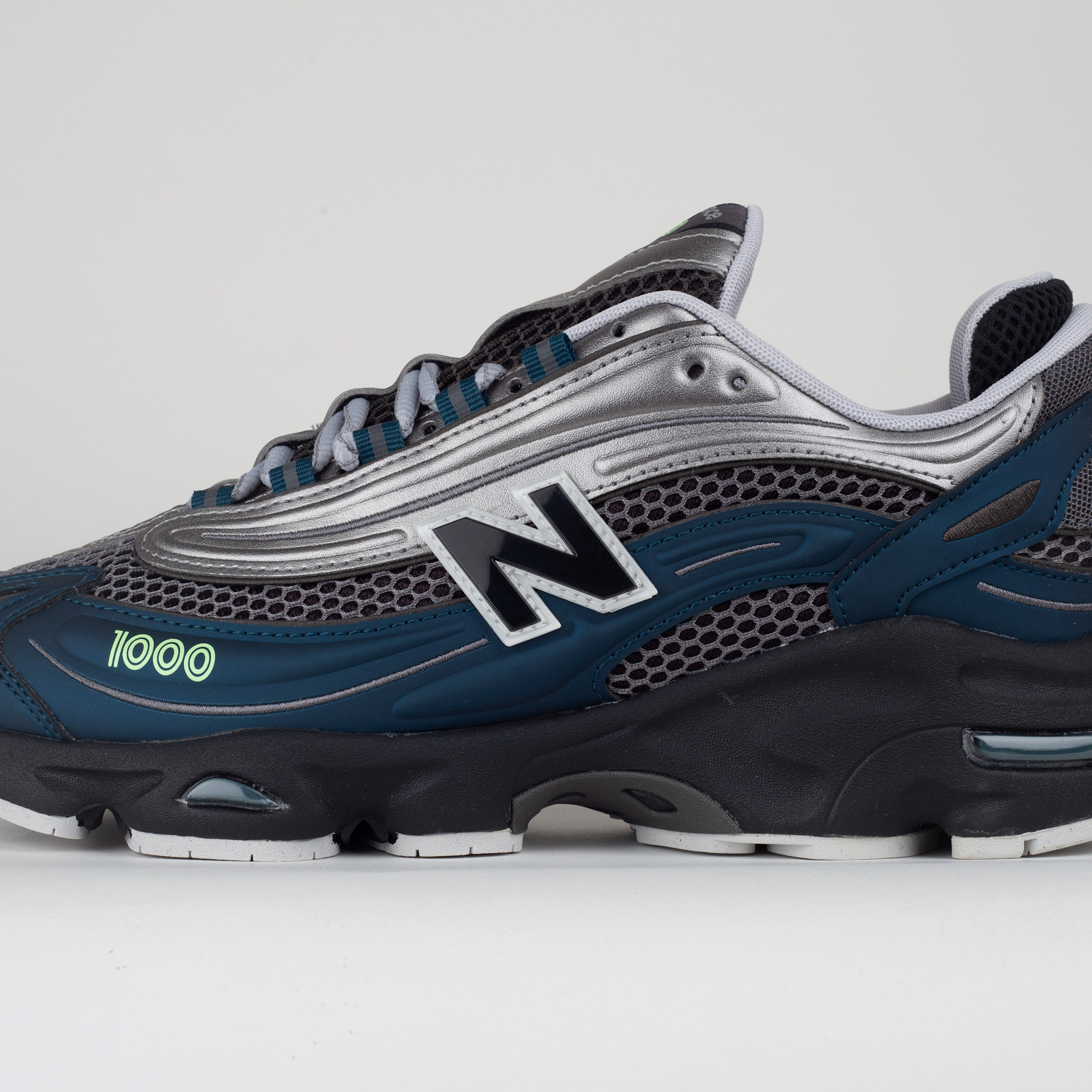 New Balance M1000S Deep Ocean/Dark Silver Metallic – Retro Y2K silhouette with mesh and synthetic upper, ABZORB cushioning, Stability Web support, and sculpted midsole for all-day comfort and style.