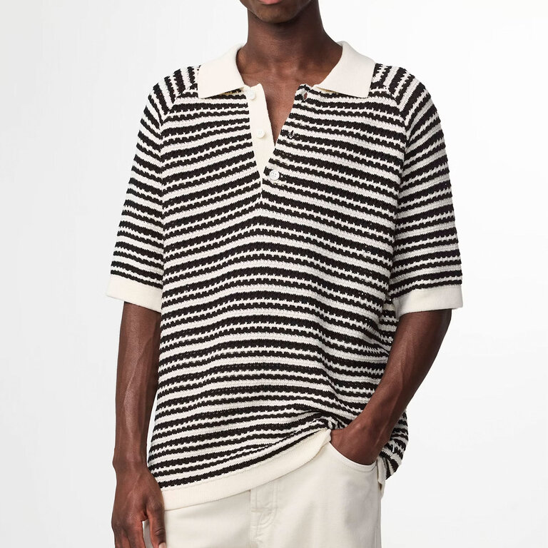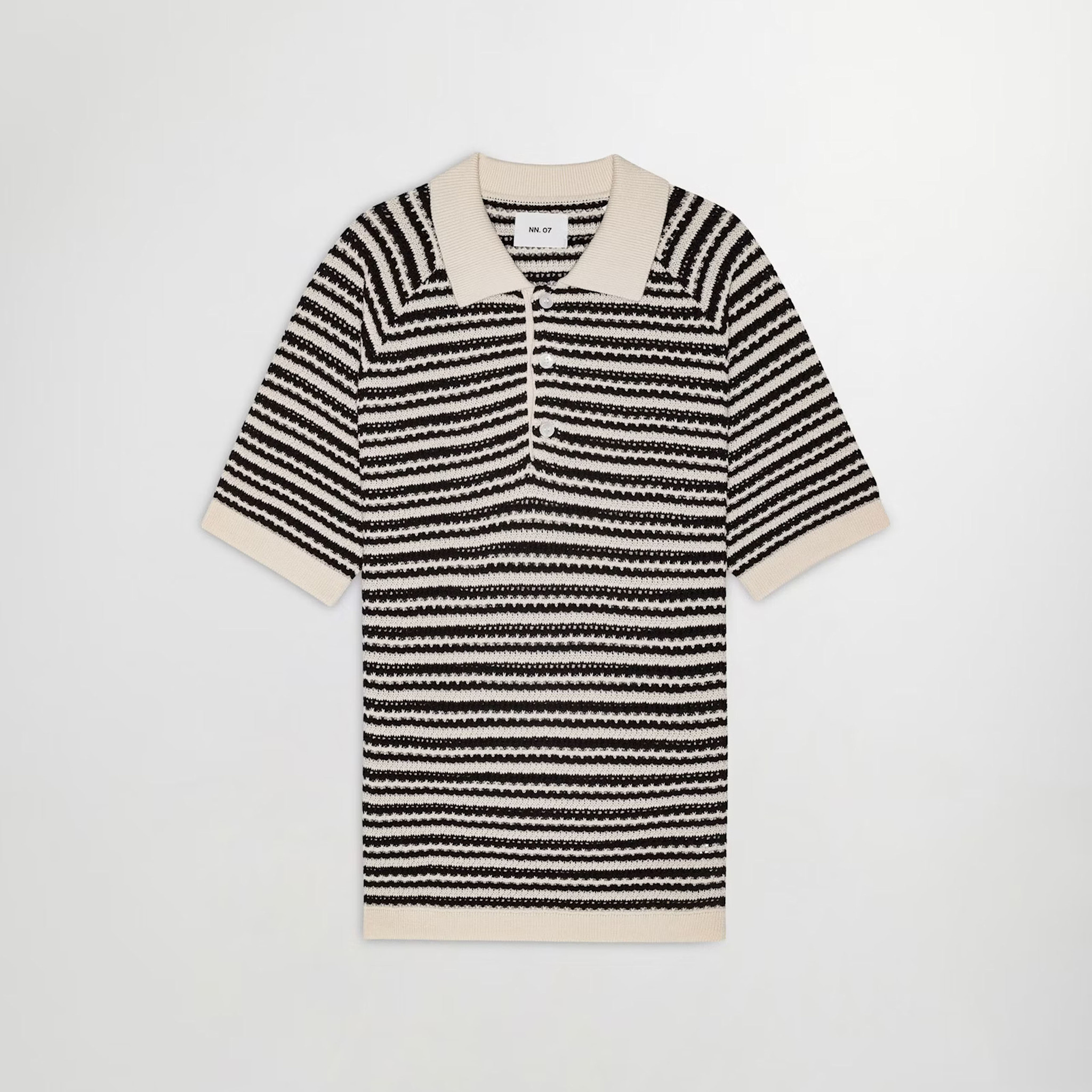 The NN07 Brett 6686 S/S Polo in Black Stripe is crafted from a very soft organic cotton multi striped yarn, complete with Mother-of-Pearl buttons.