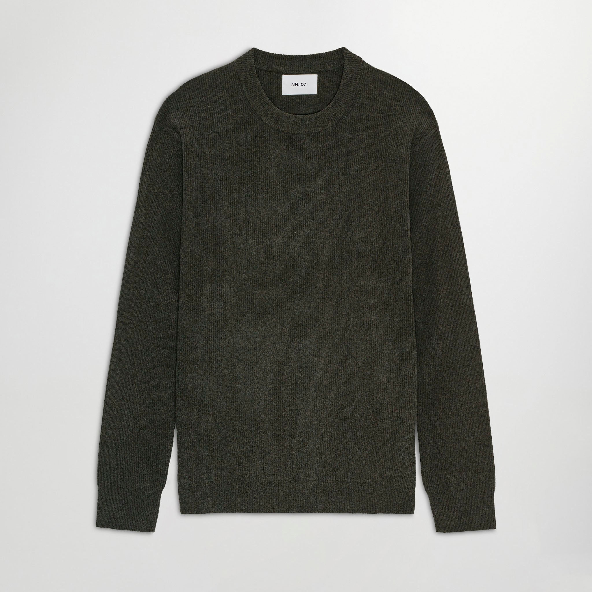 NN07 Danny 6429 Dark Army is a soft lightweight rib knit sweater in a regular fit, crafted from a 78/22 polyester-polyamide blend, with refined rib details along the neckline and arms.