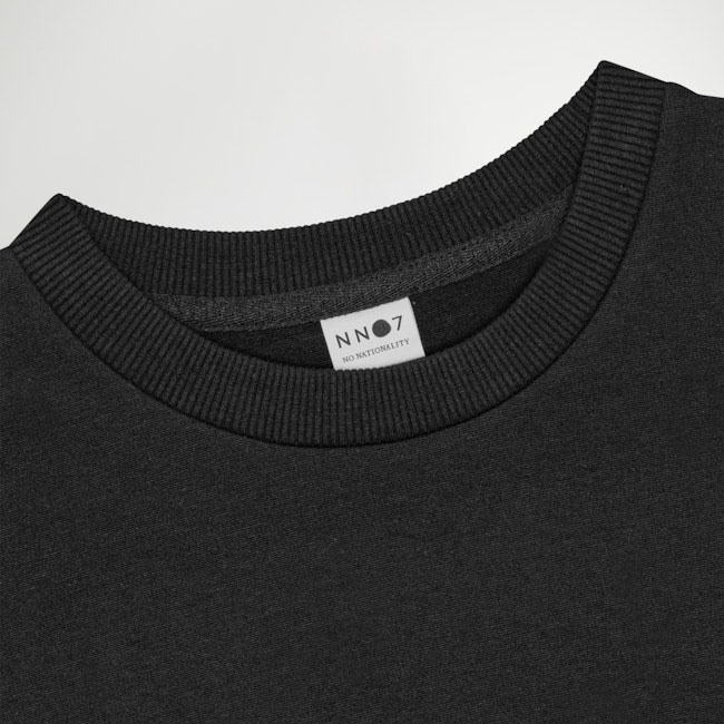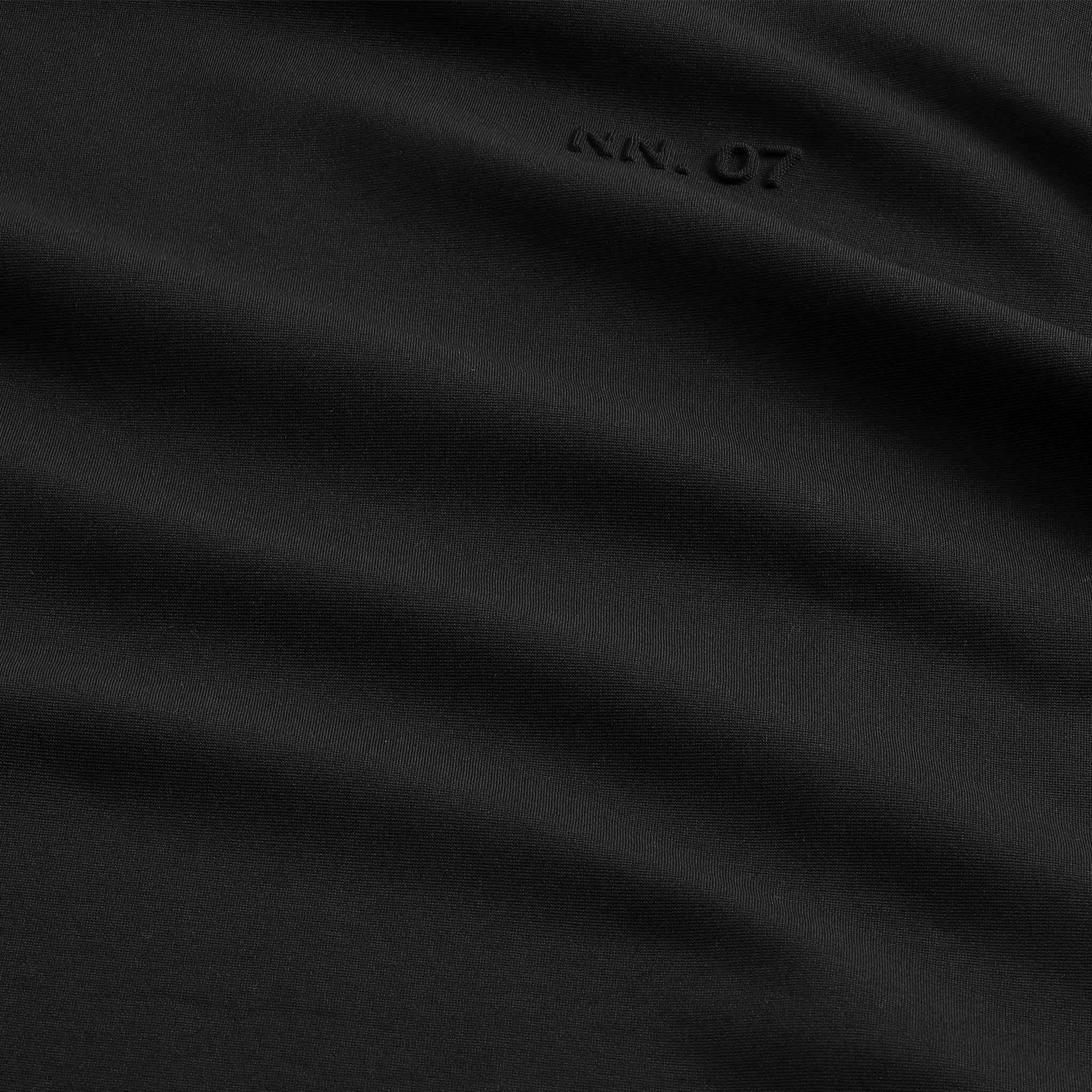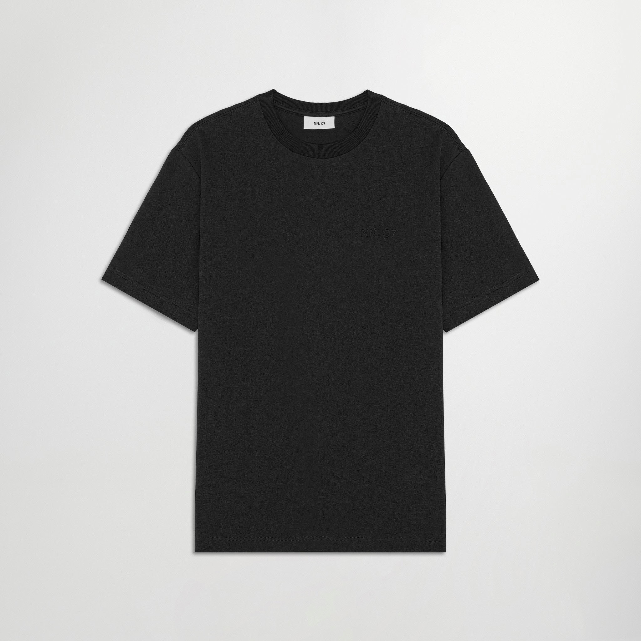 NN07 Nat Logo Tee 3457 Black is a relaxed fit, heavyweight logo tee knitted in an organic cotton & TENCEL™ blend (290 g/m²). It features a Ponte di Roma stitch, subtle stretch, and embossed NN.07 chest branding.