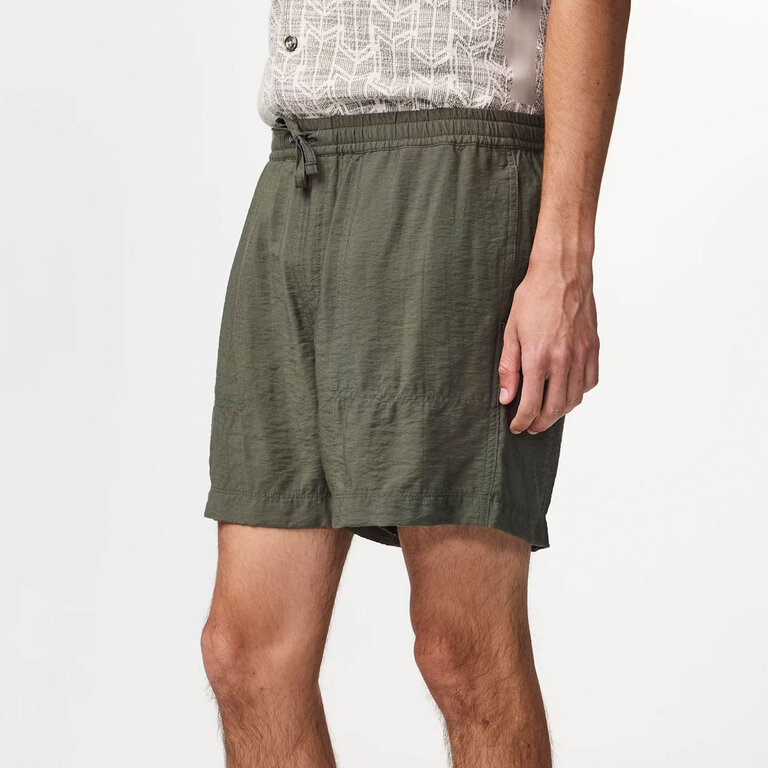 The NN07 Ryder Shorts 5971 in Croc Green is crafted in a crinkle TENCEL™ modal blend with an elasticated waistband, a drawstring closure, and pockets in the side seam.
