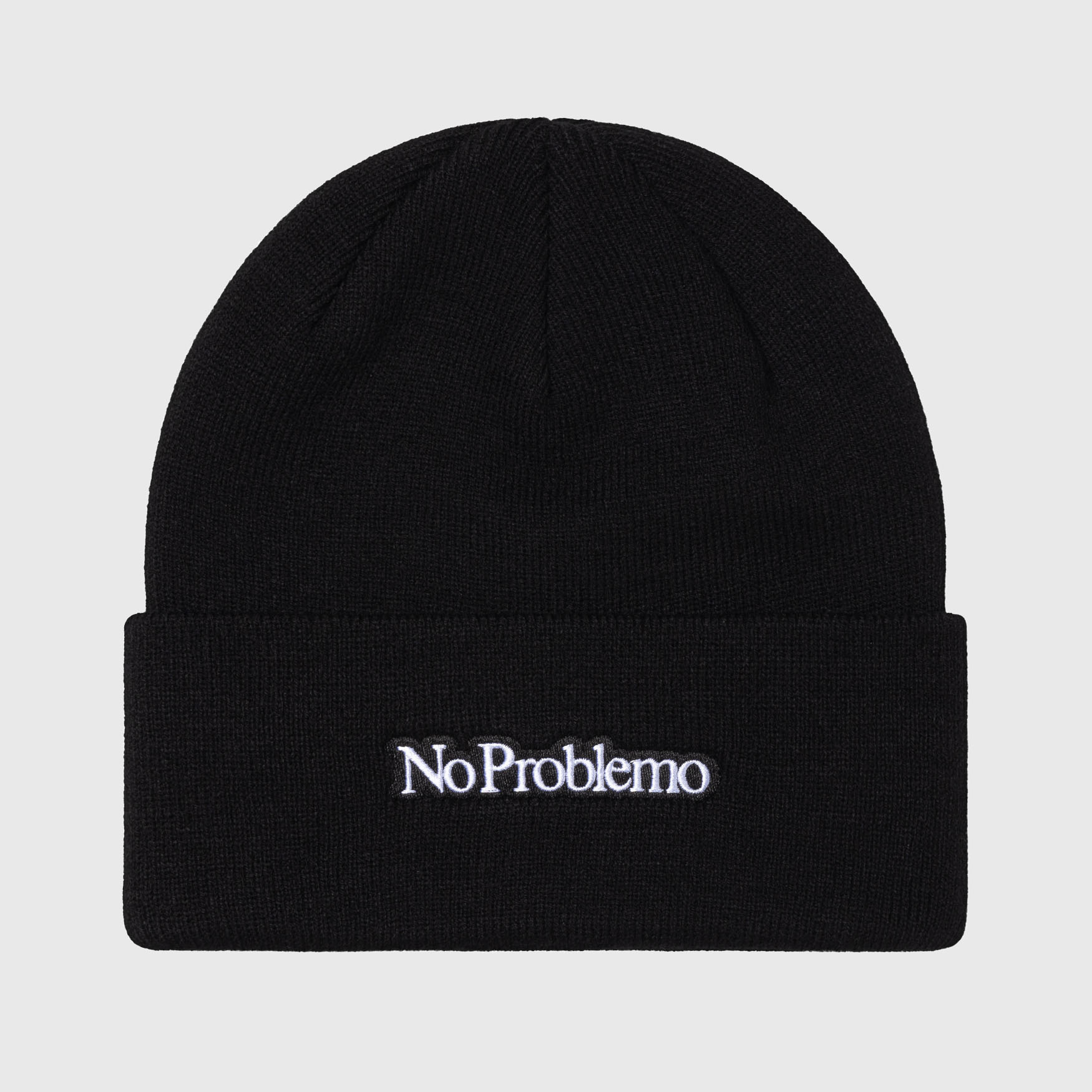 No Problemo Beanie Black is a ribbed acrylic knit beanie with a turned cuff and jacquard “No Problemo” branding, designed for comfort, stretch, and streetwear style.