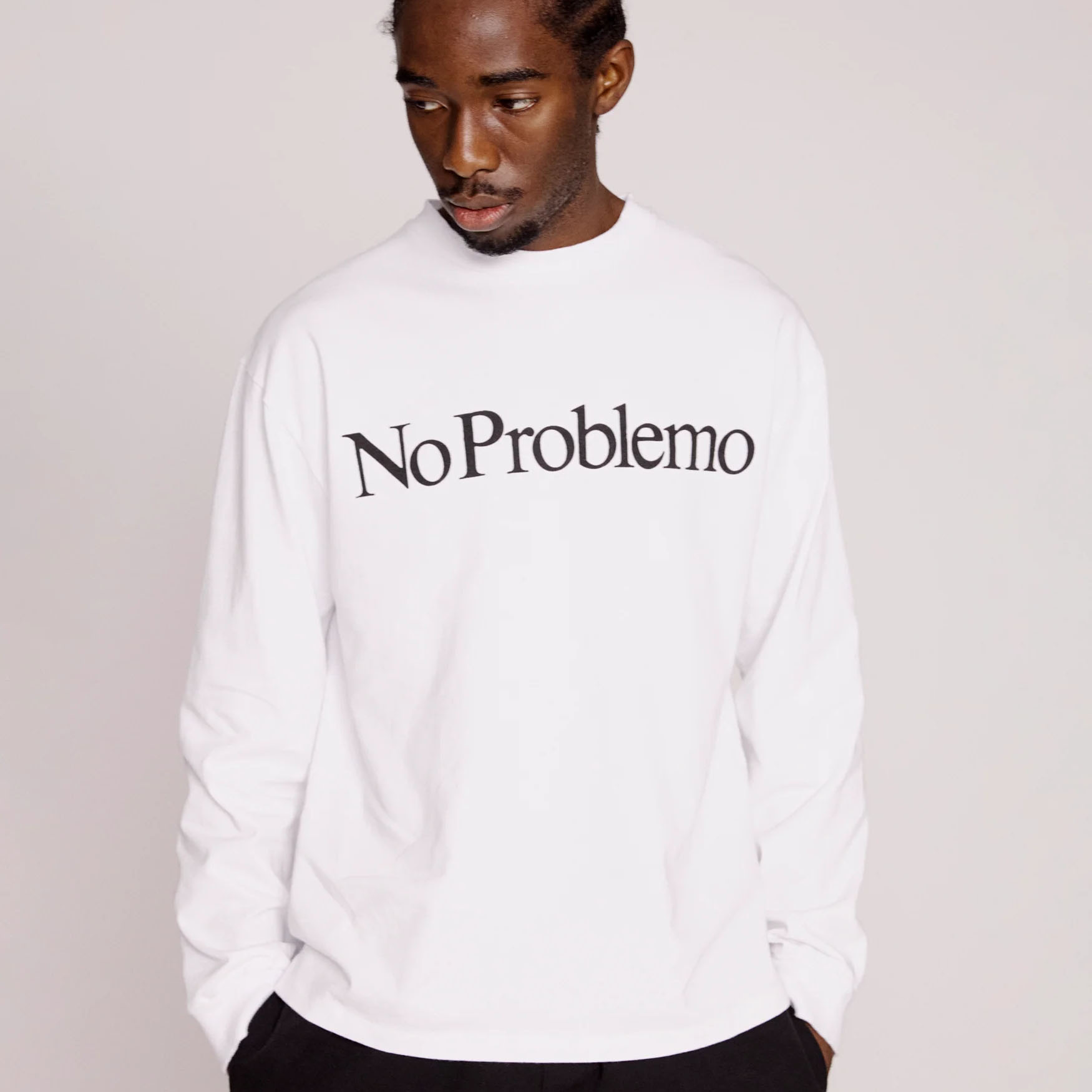 No Problemo LS Tee White is a heavyweight 100% cotton long-sleeve shirt in a regular fit, featuring a bold “No Problemo” screen print, ribbed collar & cuffs, and durable jersey construction.