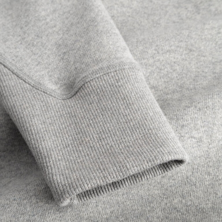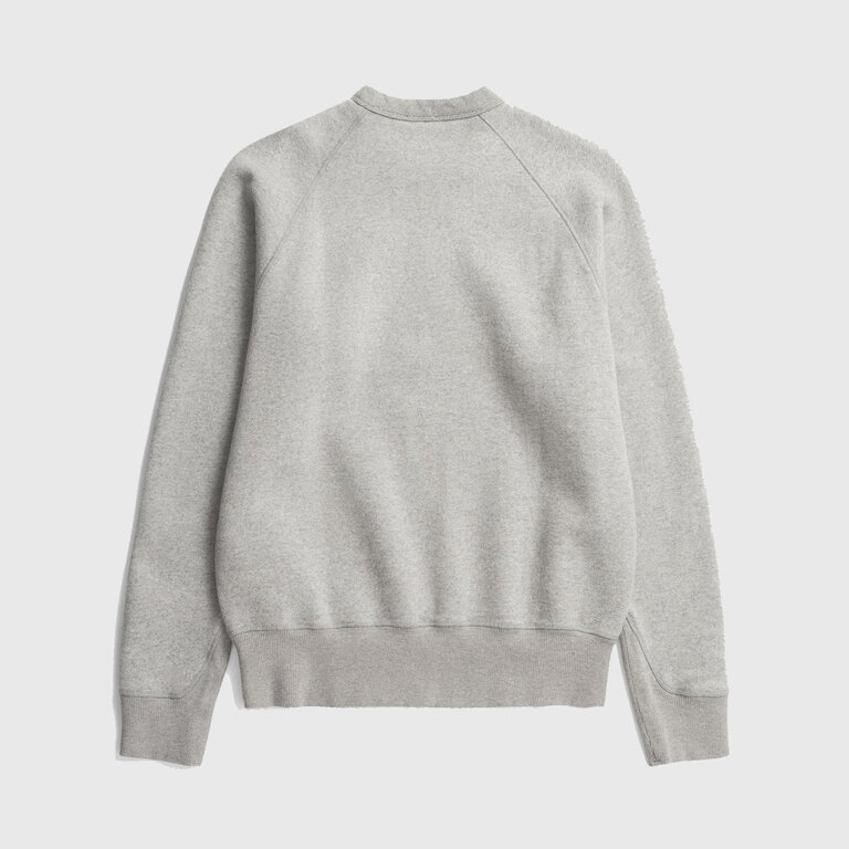 Norse Projects Marten Relaxed Cotton Wool Sweat Grey Melange blends cotton and wool for textured warmth in a relaxed fit, featuring raglan sleeves, ribbed cuffs and hem, garment-dyed finish, and subtle chest branding.