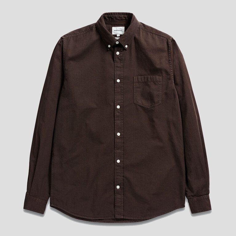 The Norse Projects Osvald BD Shirt in Espresso is an regular-fitting shirt, constructed from a light and crisp Italian cotton twill. The shirt is garment-dyed and features a chest pocket, shaped hem and mother-of-pearl buttons.