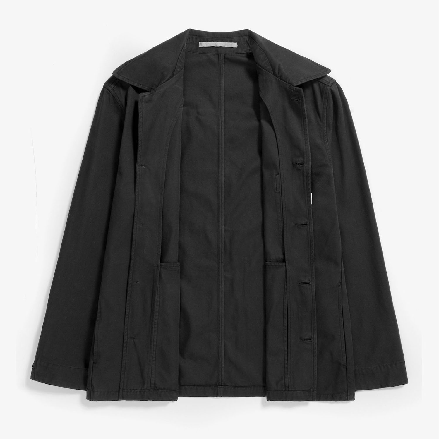 Norse Projects Standard Twill Overshirt Black is cut from densely woven 100% cotton twill with a straight, boxy regular fit. It features a classic collar, corozo buttons, a patch chest pocket and side pockets — great as an overshirt or lightweight jacket.