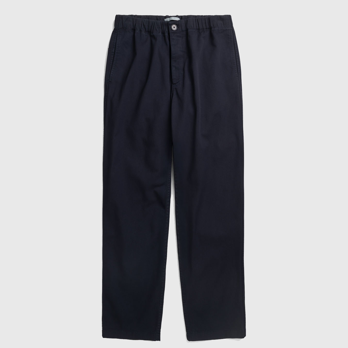 The Norse Projects Trysil Regular Organic Stretch Twill Pant in Dark Navy features a clean regular fit with a tailored look. Crafted from organic cotton stretch twill, it offers comfort, flexibility, and refined Scandinavian style.