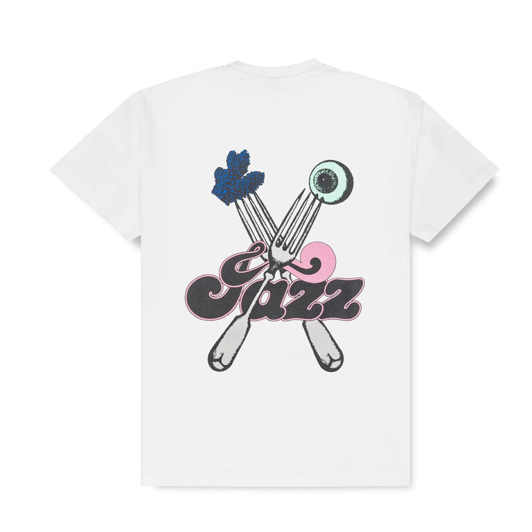 The Reception SS Tee Comfort White is an short sleeved t-shirt constructed out of an single jersey 240 Gr/M2. Has an duo chest print and an big graphic print on the back. Regular fitted.