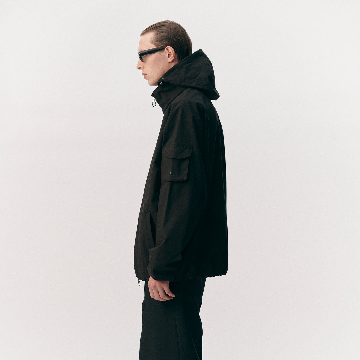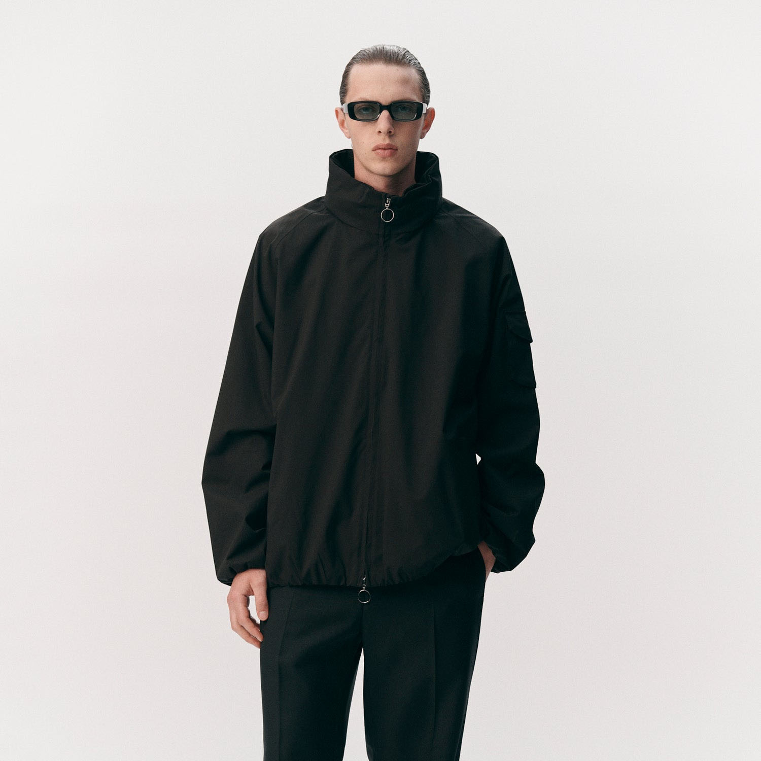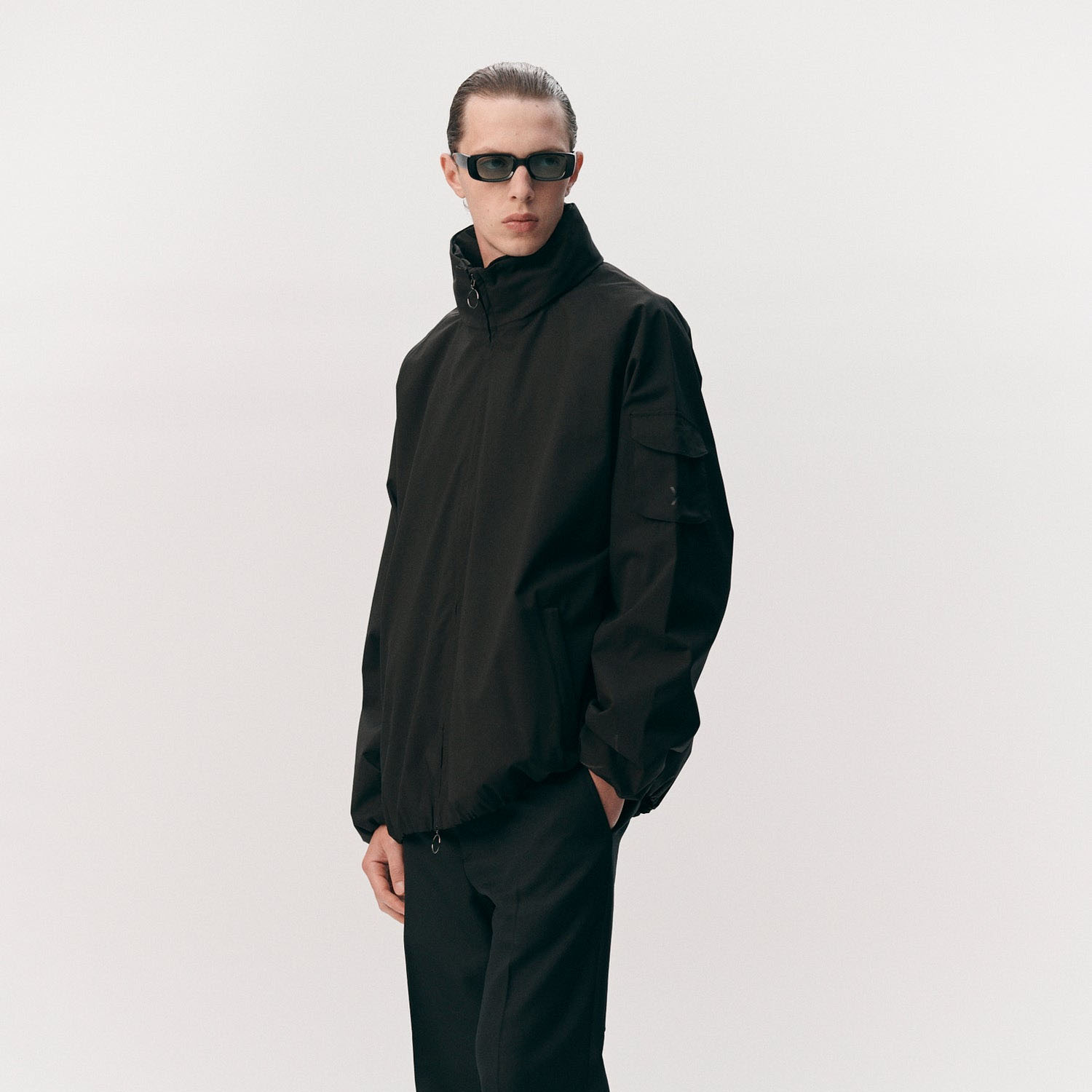 The Welter Shelter Short Tracker GN in Black is a lightweight technical jacket with a clean, modern silhouette. Crafted from ultra-mini ripstop fabric, it offers wind and rain protection while remaining breathable and packable for everyday use.