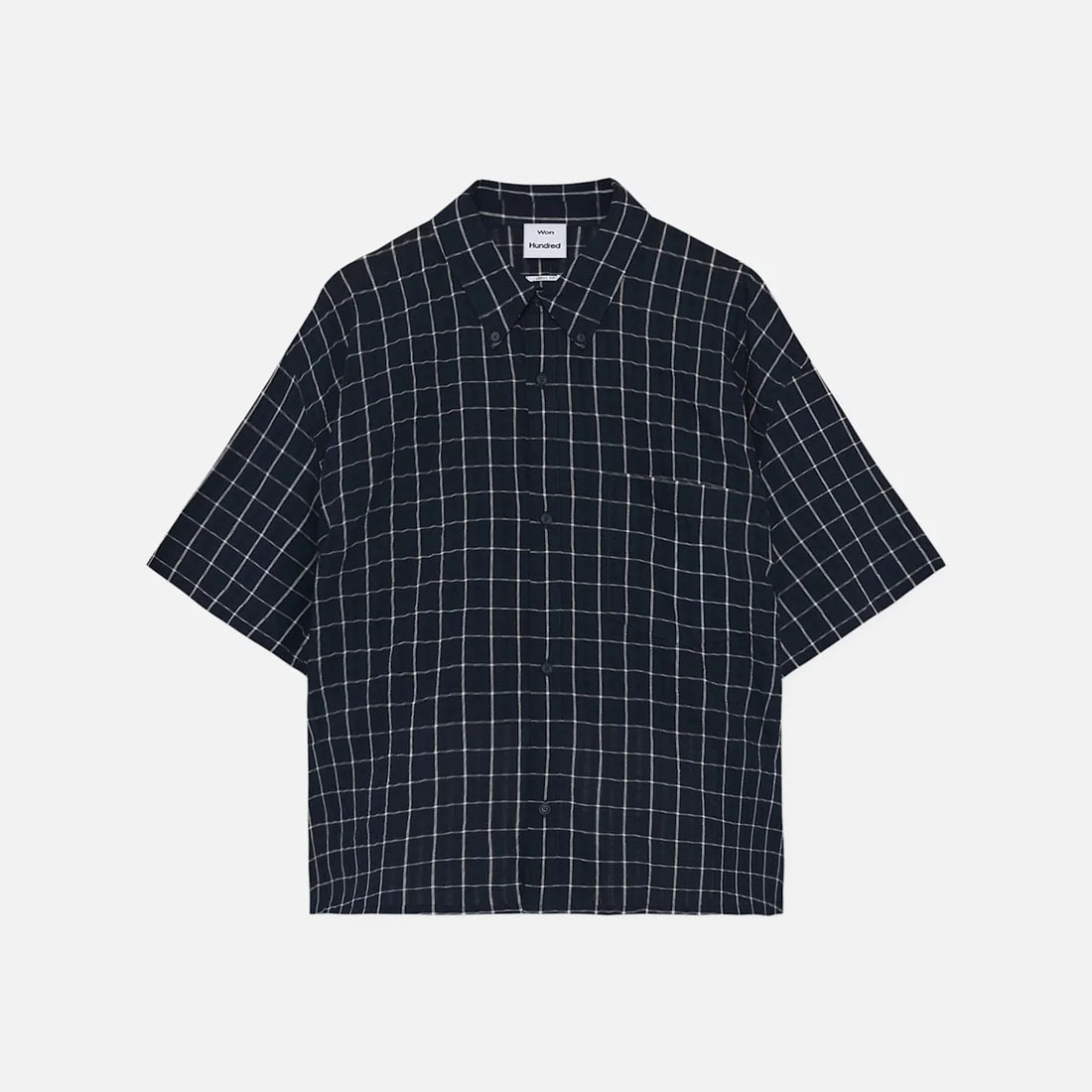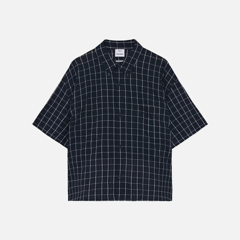 Won Hundred Maza Check S/S Shirt Navy Blue Comb.